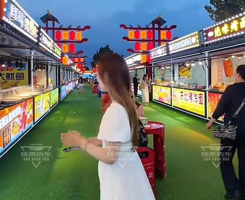 落地執(zhí)行精益求精:選用佳美店車美食餐亭;中式復(fù)古設(shè)計與正定古塔華塔融合,溫暖而不眩目,勾勒出古建夜間優(yōu)雅輪廓。招商嚴(yán)選本土老字號與創(chuàng)意小吃,確保每一味都承載正定故事。